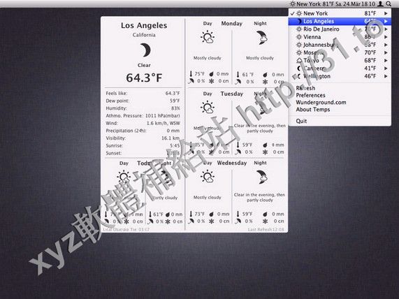 • Temps v1.9.4 MacOSX 英文正式版(菜單欄氣象站和世界時鐘軟體)